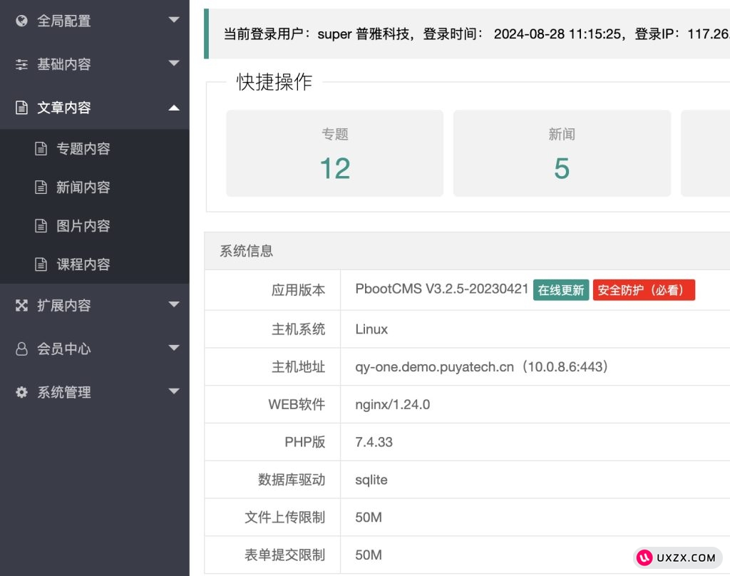 后台首页点击系统信息里面的-在线更新-检查更新,完成升级操作